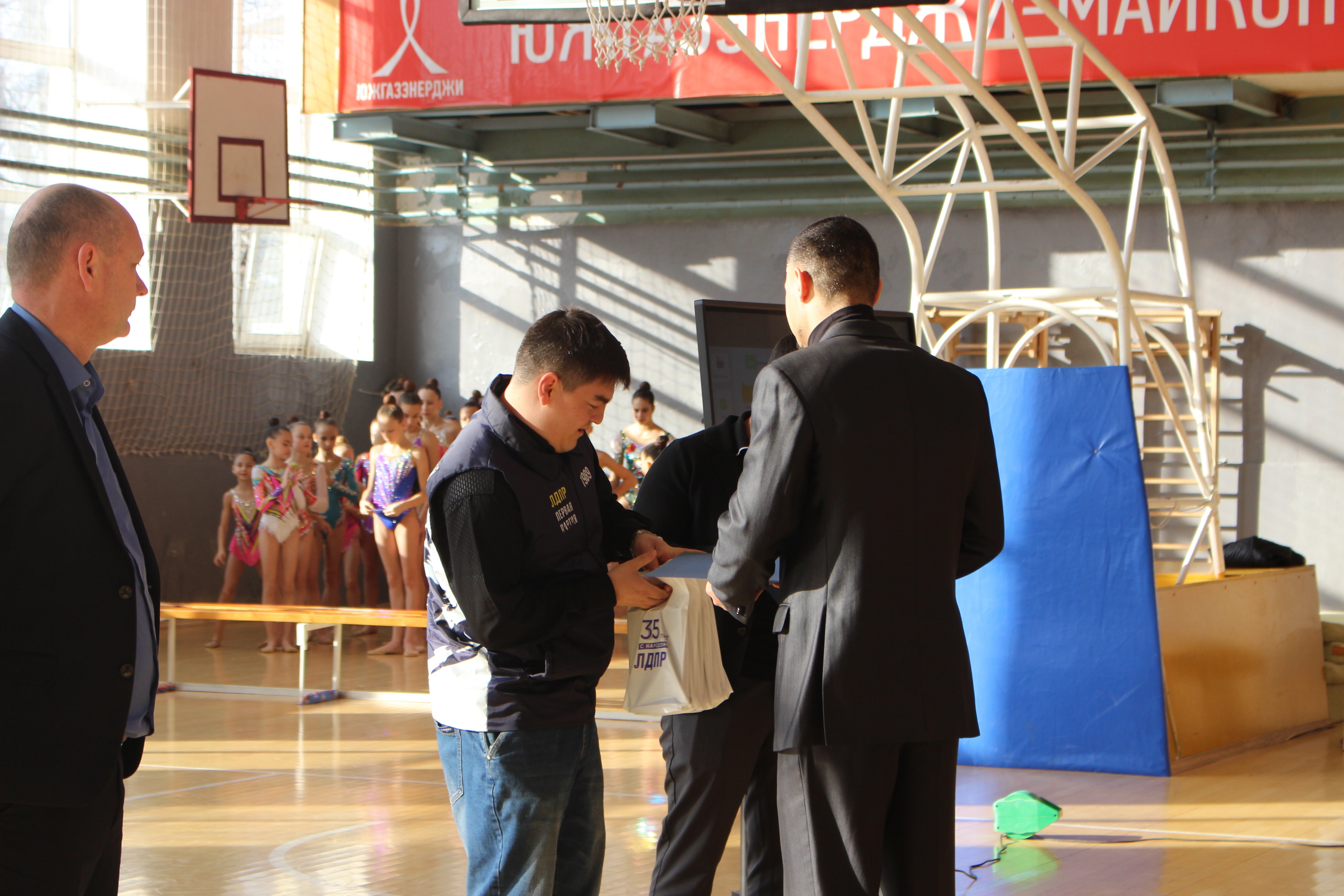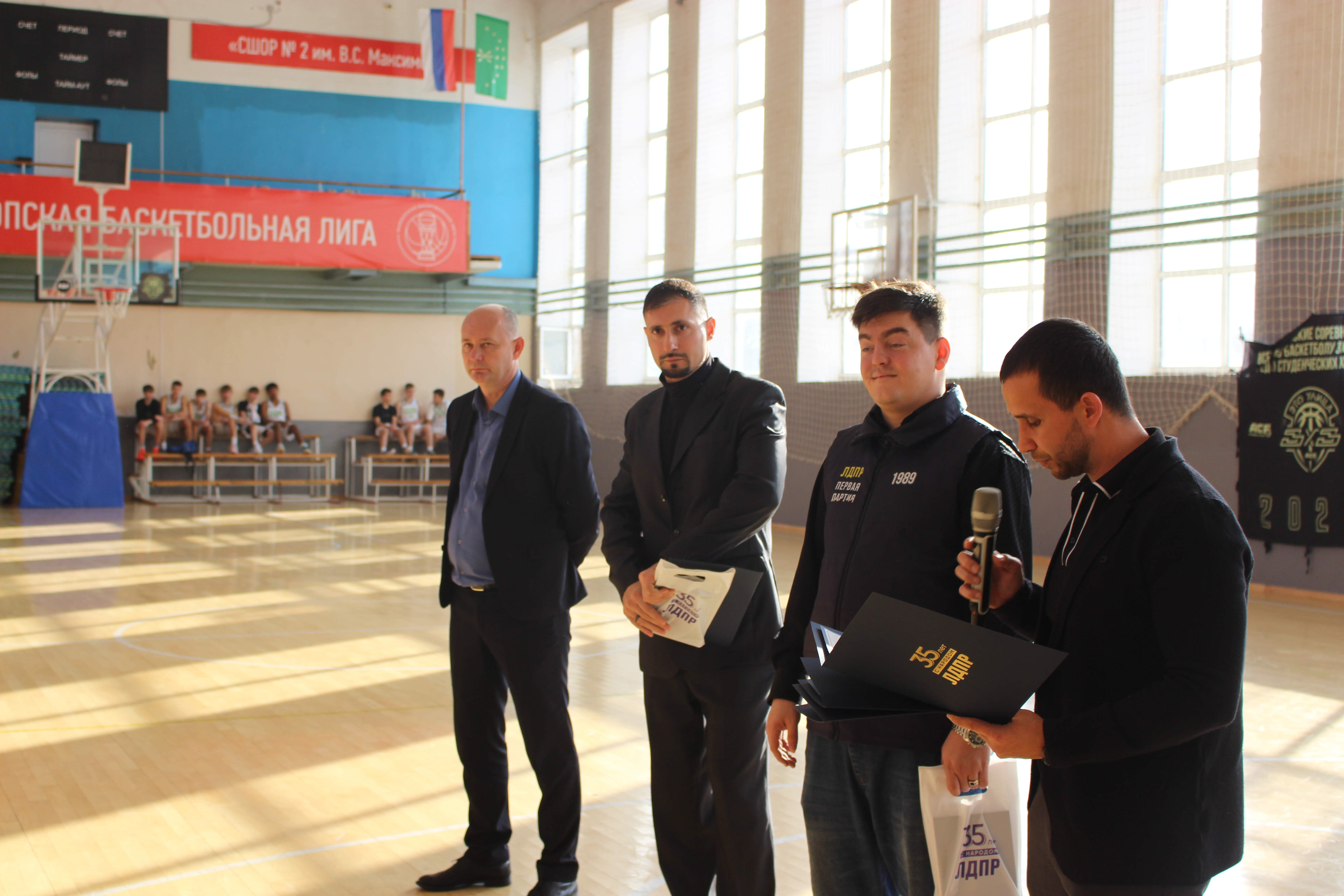 Активисты партии посетили юбилей школы, торжественно передали грамоты от председателя ЛДПР Леонида Слуцкого, а также вручили памятные подарки в знак признательности за огромный вклад в развитие массового спорта.